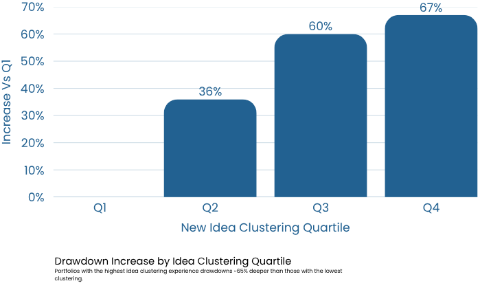 Idea clustering is associated with fragility: many new positions introduced over short periods can lead to deeper drawdowns.